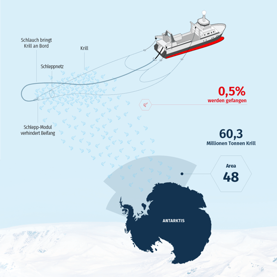 Gemäß der ECO-Harvesting® Standards wird streng kontrolliert, dass nur 0,5 % des Weltkrillbestandes gefangen werden.