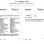 Die Laboranalyse wurde von dem unabhängigen Prüflabor der AgroLab GmbH durchgeführt. Man hat uns für unsere Kunden die mehrseitigen Untersuchungsergebnisse in verständlicher Form auf einer Seite zusammengefasst (Qualitätsbescheinigung). Auch den detaillierten Prüfbericht finden Sie hier.