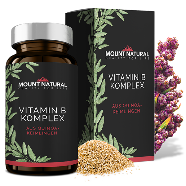 Vitamin B Komplex versorgt rundum natürlich mit allen 8 B-Vitaminen aus österreichischen Quinoakeimlingen (B1, B2, B3, B5, B6, B7, B9, B12). Diese natürliche Form der B-Vitamine kann vom Körper effektiver aufgenommen und verwertet werden als synthetische Formen.